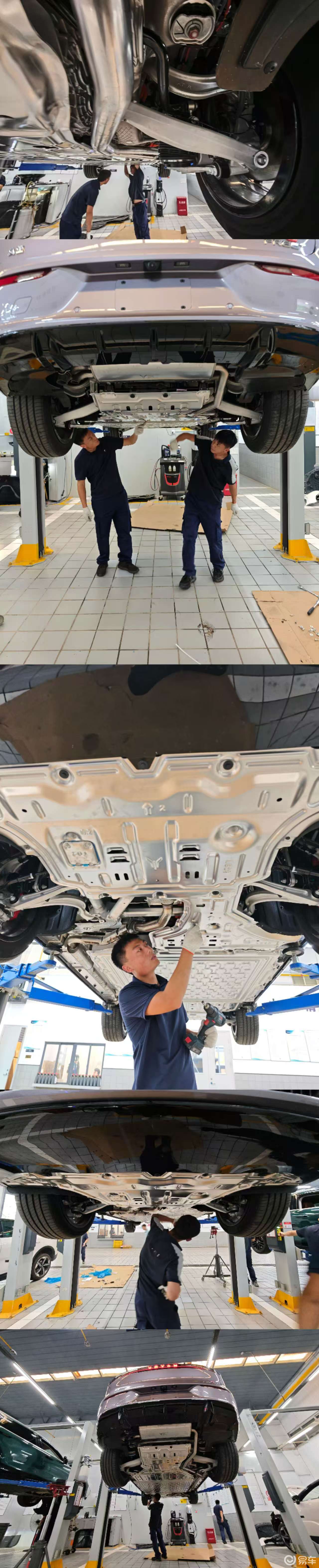 去年3月,在入手岚图追光测试车辆空气悬架的通行能力(硬当SUV用),不小心遇到了尖锐凸起的石头把车底盘刮了一道痕迹。心疼至极的教训!于是在购买Free+的第一时间就下单了底盘护板。一开始以为就是很普通的一场加装;从车辆驶入维修间,扒开新车的底部的「遮羞布」,我知道我买对了!