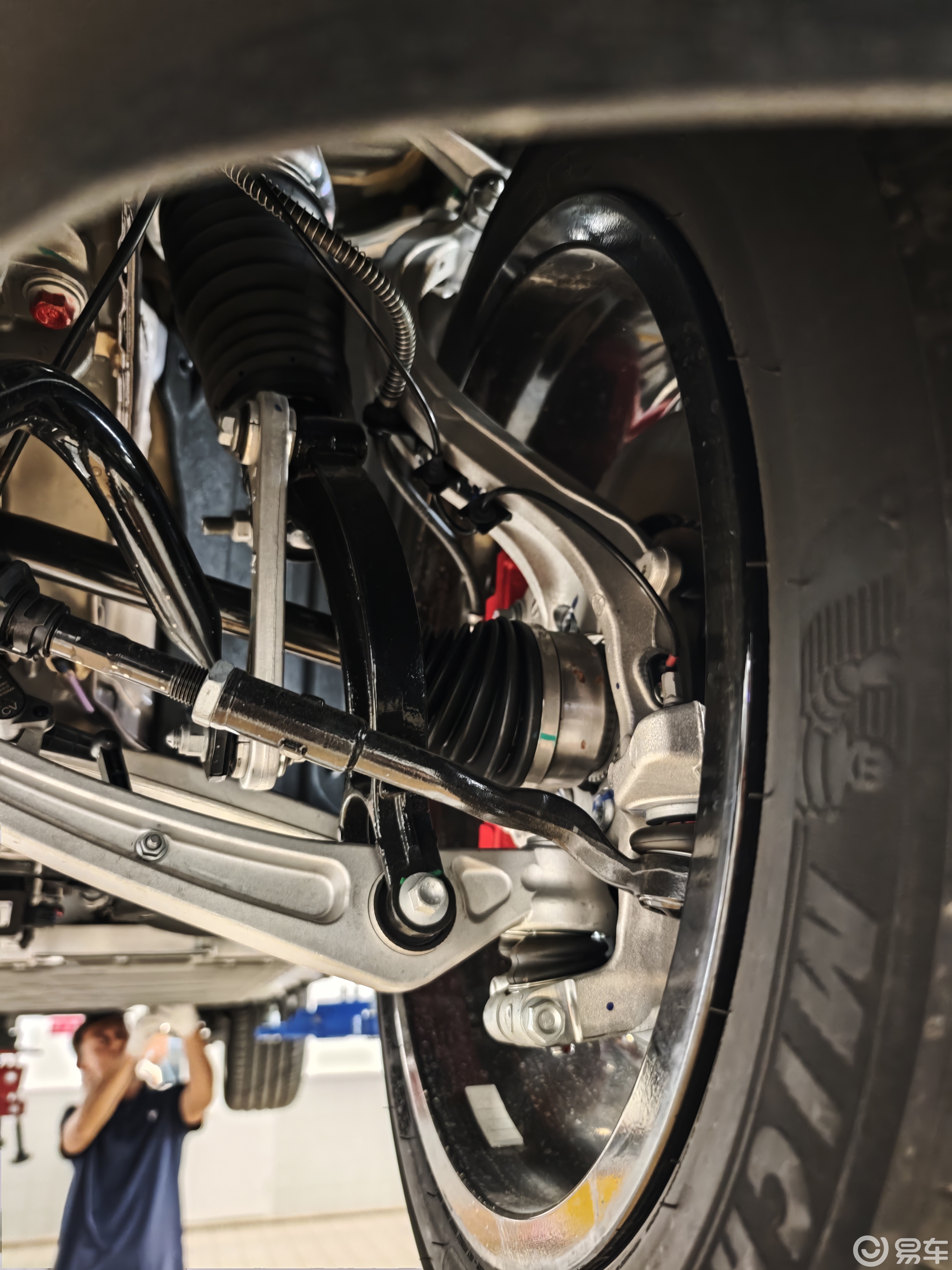 ·前后悬挂,是全框式的铝合金副车架,包括下摆臂也采用粗壮的铝合金复合连杆后轴,后轴头支架、上臂控制都是铝合金材质。