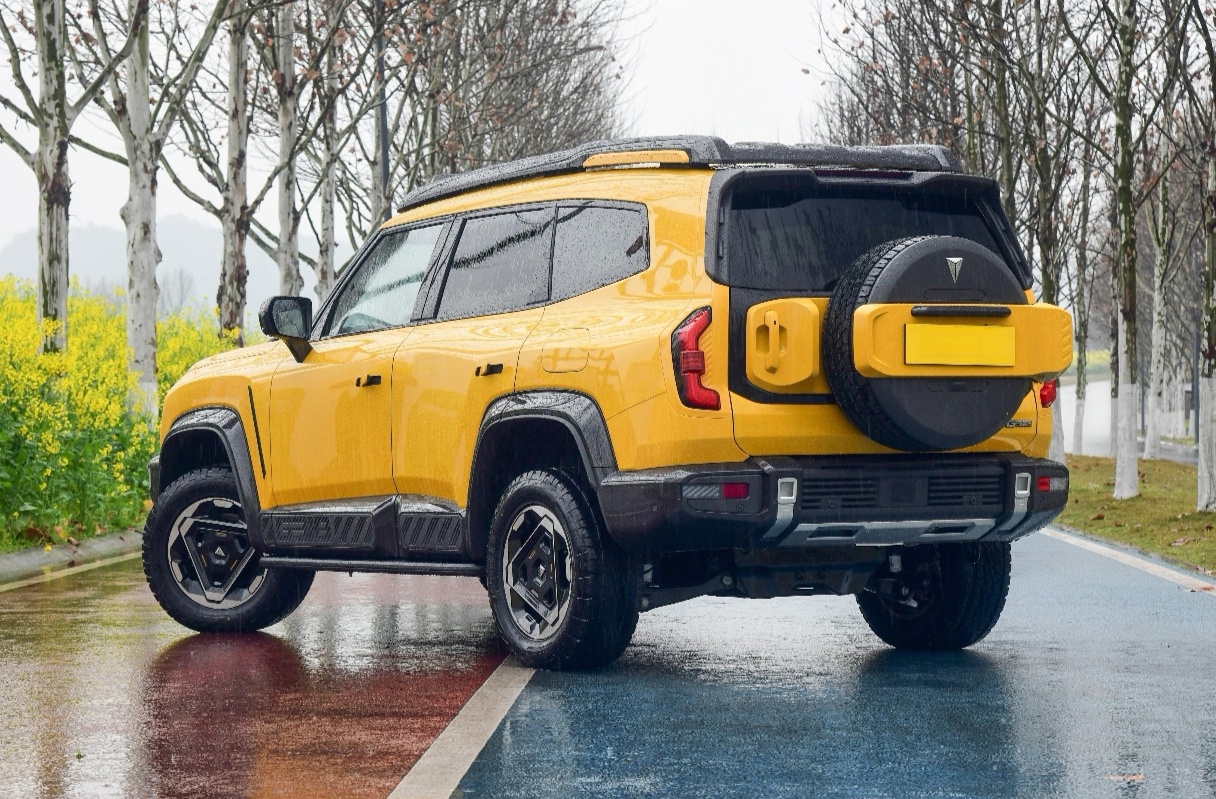 方程豹钛7采用承载式车身结构,前后悬架分别为双叉臂式独立悬架和多连杆式独立悬架,配备云辇 C 智能阻尼控制系统,可根据路况调节底盘软硬,过弯时侧倾幅度小,在非铺装路面也有较好的减震性能。搭载前后双电机,采用比亚迪的插电式混合动力系统,动力输出较强,最大输出功率达到了490马力,零百加速仅为4.5秒。但该车没有中央差速锁,在极端越野路况下的脱困能力相对有限。