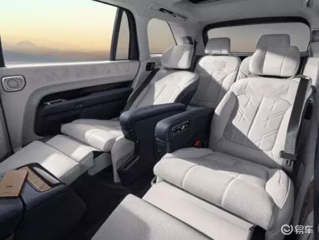 在座舱体验方面,极氪9X全车座椅采用Soft Nappa全粒面头层真皮,音响系统则配备了宾利同款的Naim音响。该车型还首创了飞翼式滑移屏,二排座椅均为零重力座椅,并支持旋转功能。三排座椅则具备前后和靠背电动调节以及加热功能,豪华配置堪称到位。