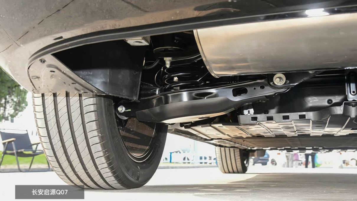 而长安启源Q07则是前麦弗逊+后多连杆式独悬,并提供CDC智能魔毯悬架,高频次扫描与自适应阻尼调节,搭配IDTC动态扭矩控制,除了说多地形的舒适外,遇到满员上路开山道,那也是一门儿灵。
