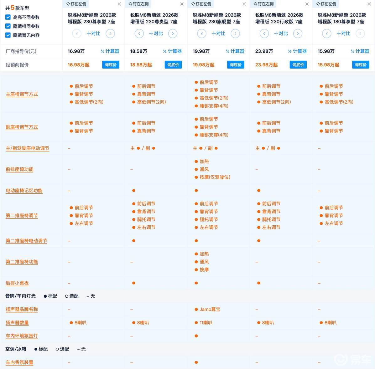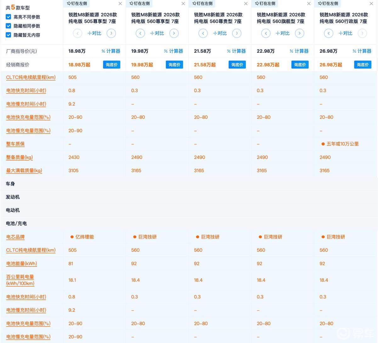 总的来说,锐胜M8走的绝对是性价比的路线,整体配置还算可以,如果是增程版的话,最值得买的就是46kWh 长续航尊享型;如果是纯电版的话,可以先考虑92kWh 长续航尊享型。