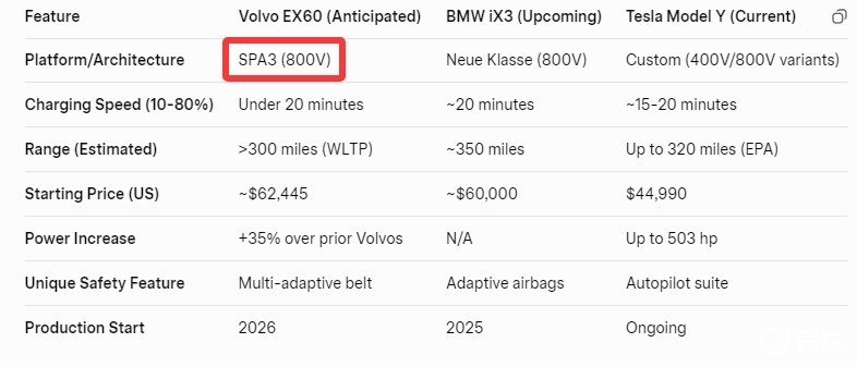 而沃尔沃EX60这次用的是SPA3平台。这是沃尔沃自己的“亲儿子”平台,也是SPA2(EX90那个平台)的进化版。