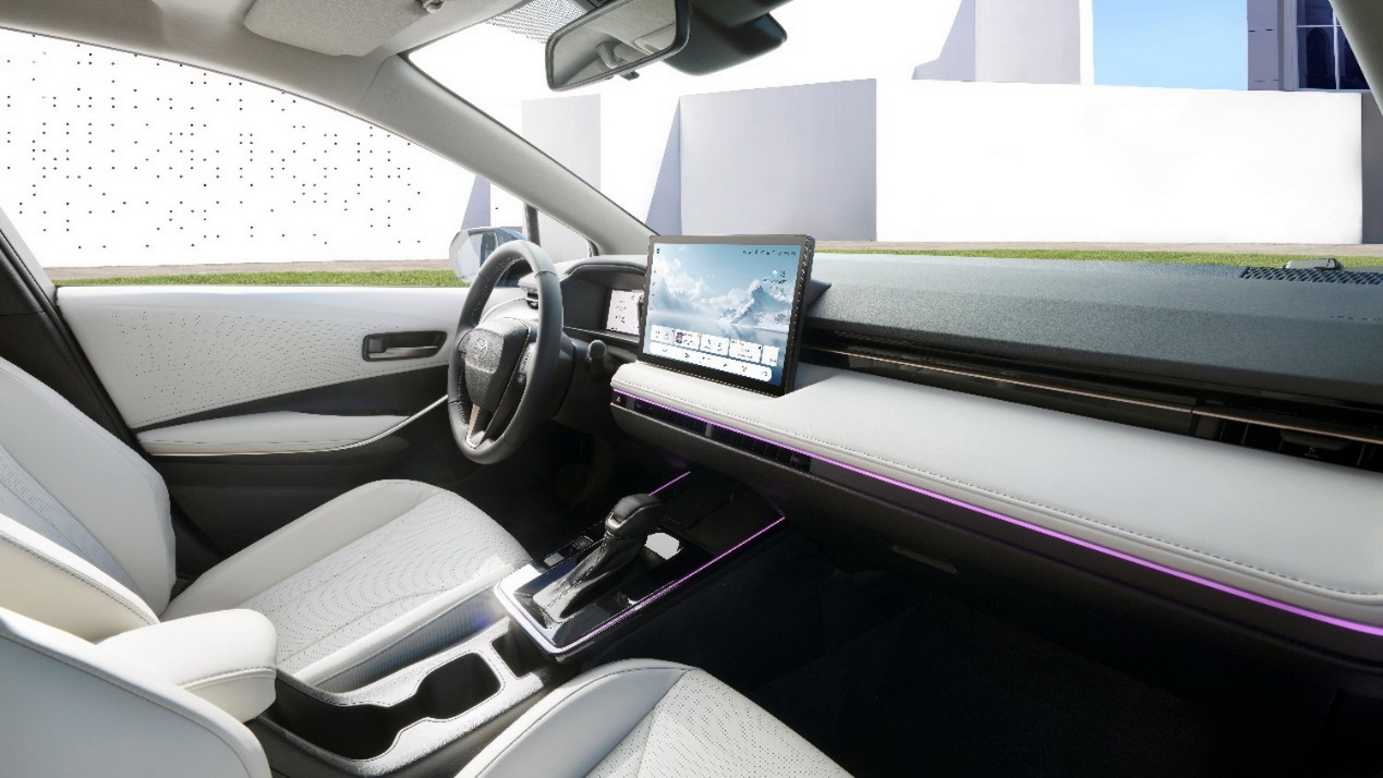 座舱方面,全新智混卡罗拉配备8.8英寸全液晶智能仪表与12.9英寸高清多媒体大屏,搭载高通骁龙8155P车规级芯片,支持AI语音交互与全平台手机互联,信息显示简洁清晰,交互体验流畅自然。此外,新车支持FOTA和SOTA升级,车机能像手机一样轻松迭代、不断进化,做到“常用常新”。