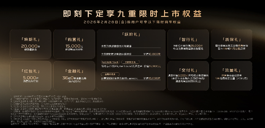 银河V900指导价30.98万—36.98万,上市权益中,超级置换2万,超级购置税补贴15000,新春红包5000,加一起是4万。所以当下这款车的价格是26.98万—32.98万,当然了,这个你就当作是这款车的最终价格就行了。另外赠送价值1万的电动脚踏板。中高配赠送27个扬声器的音响。典藏版还会赠送纯金徽标,还赠送充电桩。剩下的权益都非常常规,不再赘述。