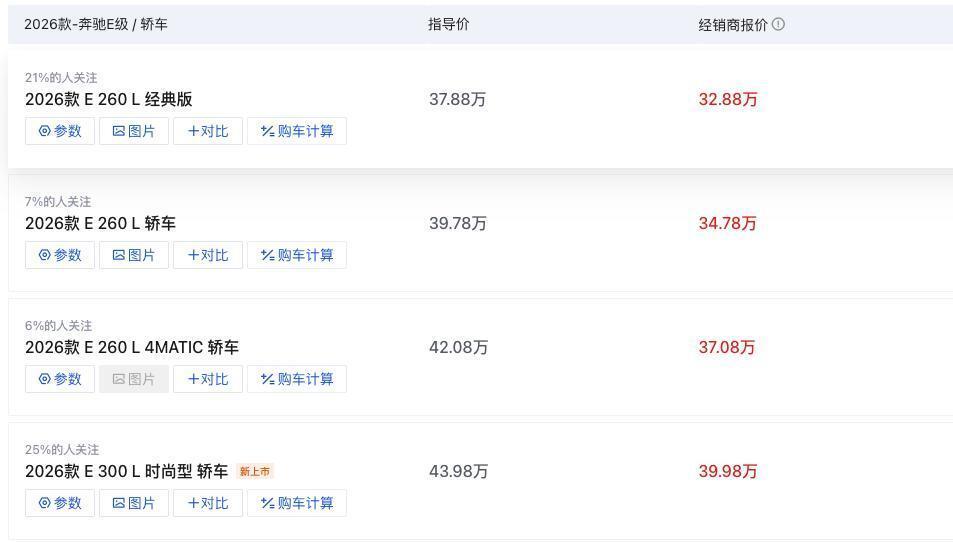 奔驰E级价格也“大跳水”,下探到32.88万起,抄底了