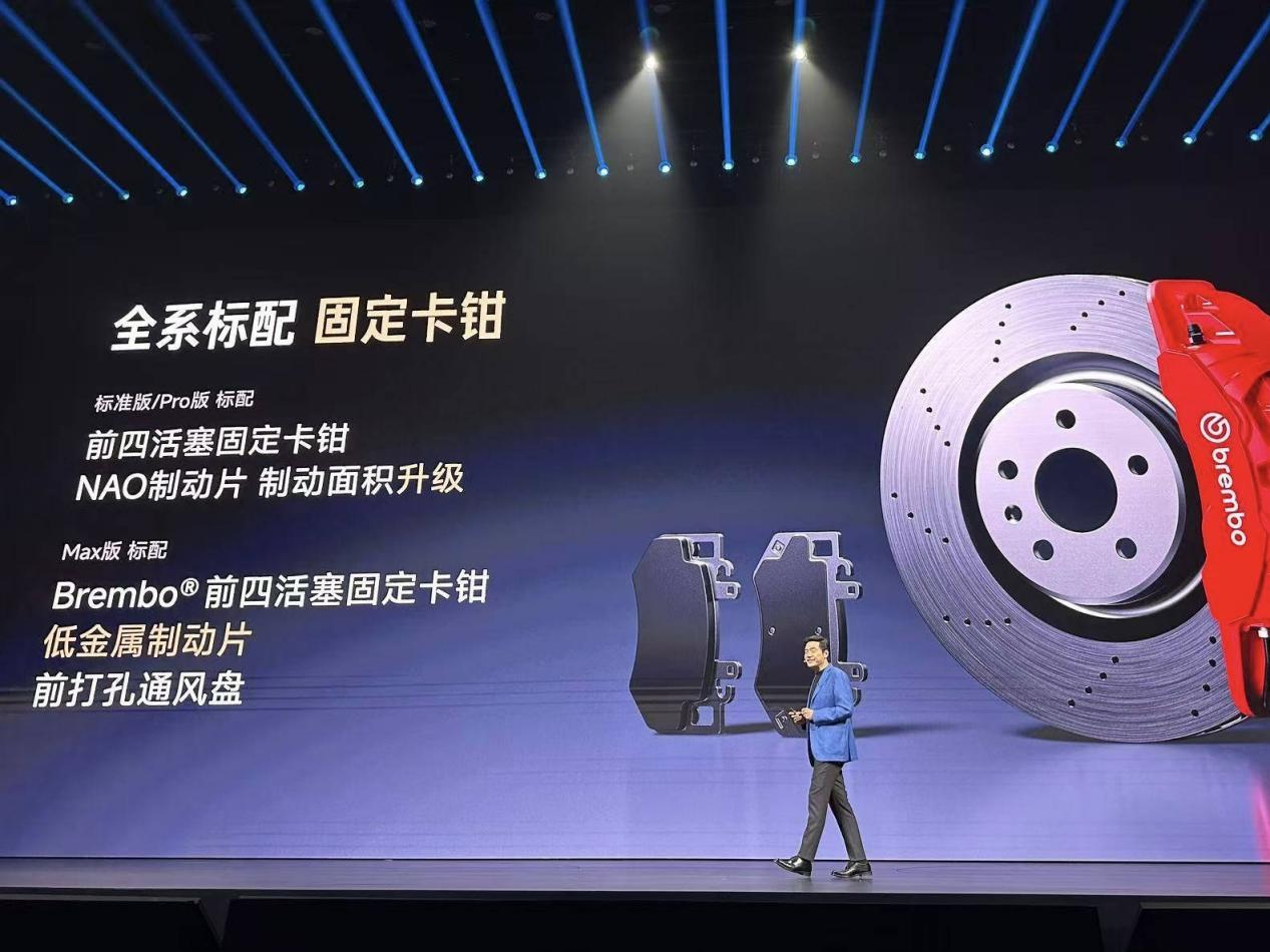 动力底盘方面,全系标配V6s Plus电机,最高转速提升至22000rpm。电池三种规格:73kWh、96.3kWh磷酸铁锂,101.7kWh三元锂,续航分别720km、902km、835km。底盘叫小米蛟龙底盘,前双叉臂+后五连杆独立悬架,前四活塞固定卡钳。Pro和Max版还配双腔空气悬架+CDC阻尼可变减振器,舒适性和操控都能兼顾。