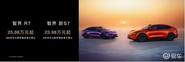 智界R7 896线双光路图像级激光雷达配置,官方建议零售价25.98万元起;智界新S7 896线双光路图像级激光雷达配置,官方建议零售价23.98万元起。2026年5月7日前下定,智界R7可享至高64,000元限时购车权益,智界新S7可享至高74,000元限时购车权益。现已经开启全国交付。