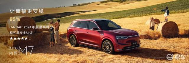 问界M7迎来重磅焕新,安全层面,问界M7新增896线双光路图像级激光雷达,感知能力全面突破,为用户带来更安心的出行保障;同时,问界M7以95.0%的综合得分率,刷新C-NCAP历史纪录,安全实力获权威认证。外观设计层面,新增夜紫车色,搭配全新21英寸星芒轮毂,更显精致豪华。