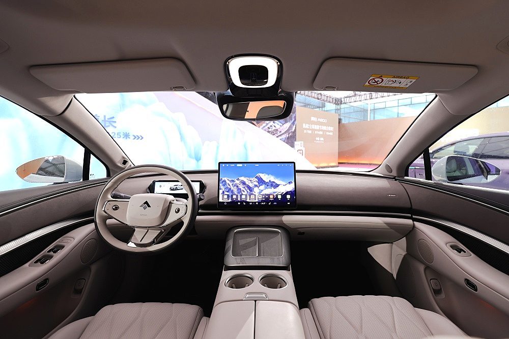 昊铂A800的内饰采用“星际座舱”设计理念,中控台呈环抱式布局,通过金属镀铬饰条与多种材质面料的层级划分营造出丰富的视觉层次感。